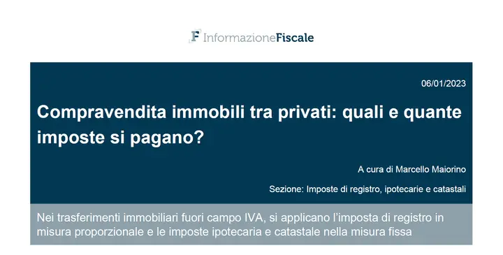 La tassazione della compravendita di immobili fra privati: analisi della normativa vigente, tabelle esplicative, documenti di prassi