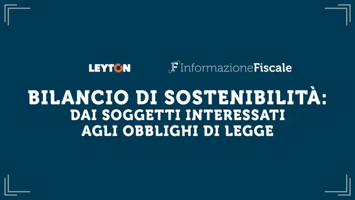 Il webinar formativo in diretta organizzato da Leyton Italia e Informazione Fiscale è destinato ai soggetti interessati dagli obblighi relativi all'adozione del bilancio di sostenibilità, alla luce delle ultime novità normative. Il webinar è gratuito per gli iscritti alla newsletter di Informazione Fiscale