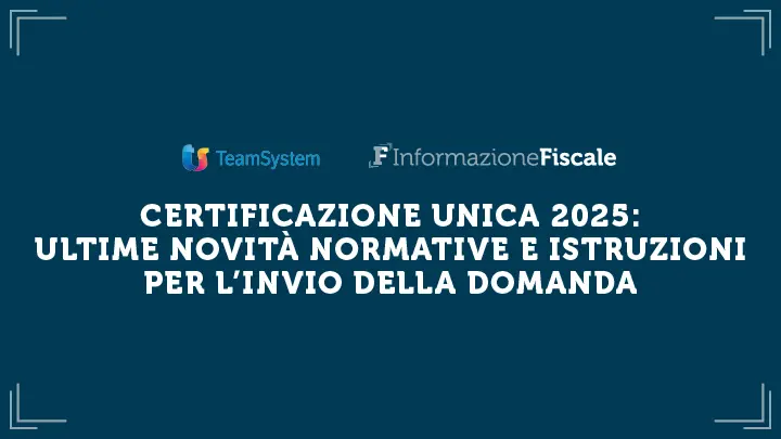 Gratuito per gli iscritti alla newsletter!Il video corso organizzato da TeamSystem e Informazione Fiscale è pensato per professionisti (dottori commercialisti, esperti contabili, consulenti del lavoro e tributaristi). È consigliato a chiunque desideri approfondire gli aspetti relativi alla Certificazione Unica 2025 e le normative collegate. 📌 Programma del corso: - Riferimenti normativi - Modalità e soggetti obbligati alla presentazione - Composizione del modello - Le ultime novità del 2025 - Termini di presentazione - Annullamento, sostituzione, tardività e relative sanzioni